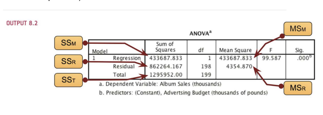 - if the mean square regression is small compared to the mean square residual, then the model does not account for much variance